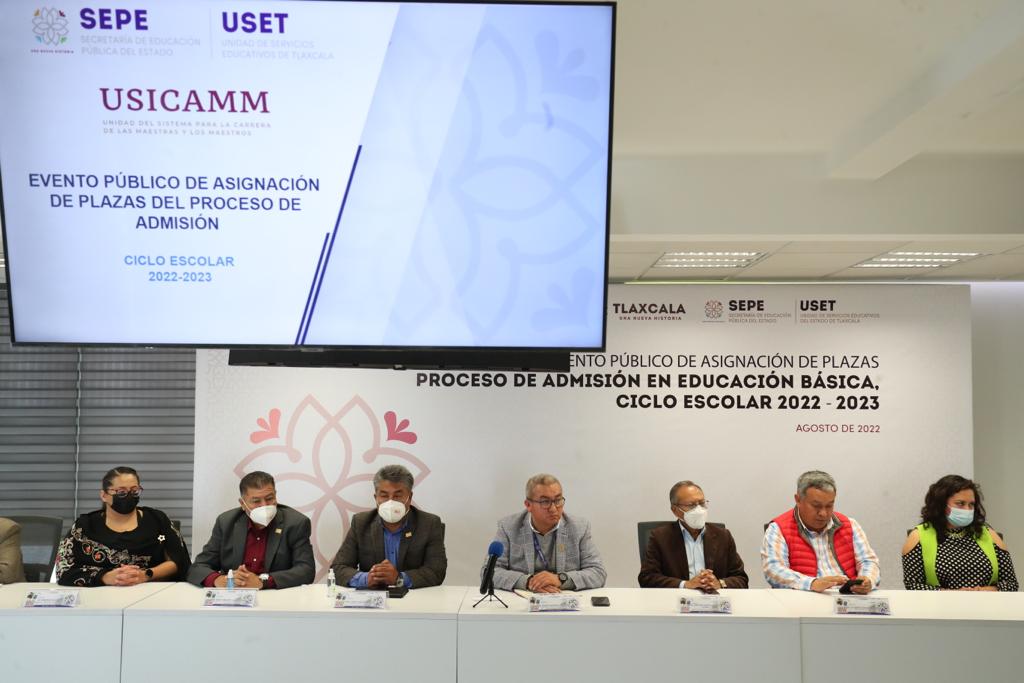Fueron 54 espacios definitivos a docentes de educación nivel preescolar, primaria y secundarias Autoridades de la Secretaría de Educación Pública del Estado (SEPE) y de la Unidad de Servicios Educativos de Tlaxcala (USET) realizaron el evento público de asignación de 54 plazas definitivas del proceso de admisión de nuevo ingreso a educación básica para el ciclo escolar 2022-2023.