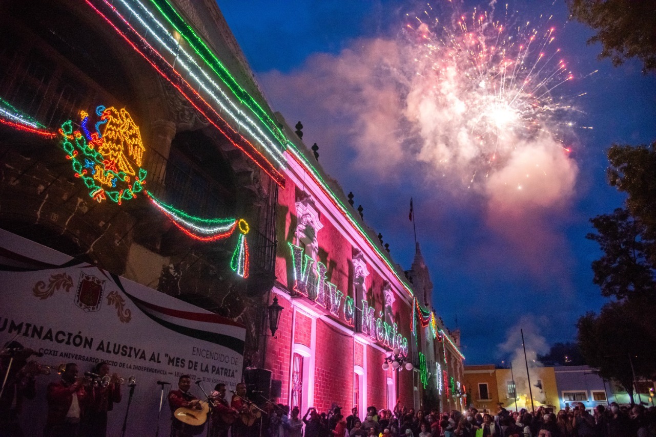 En un ambiente de festejo patrio, armonía y convivencia familiar, el secretario de Gobierno, Sergio González Hernández, en representación de la titular del Poder Ejecutivo de Tlaxcala, Lorena Cuéllar Cisneros, acompañado de la presidenta honorífica del Comité Consultivo de Bienestar y Desarrollo Social, María Fernanda Espinosa de los Monteros Cuéllar, encendió las luces alusivas a las Fiestas Patrias en Palacio de Gobierno y lugares emblemáticos de la capital tlaxcalteca.