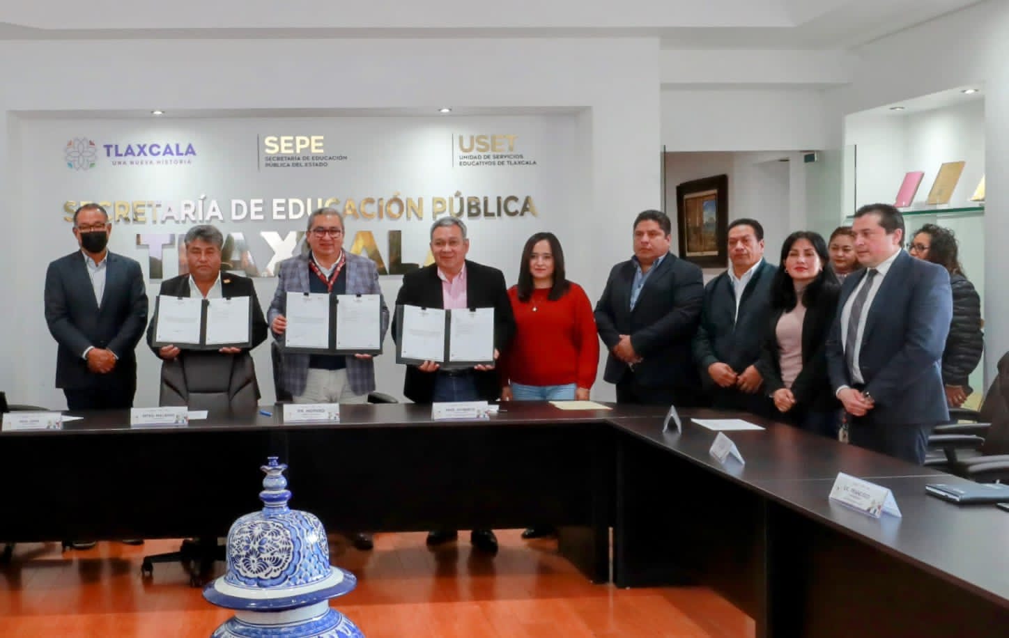Autoridades de la Secretaría de Educación Pública del Estado y de la Unidad de Servicios Educativos del Estado de Tlaxcala (SEPE-USET), así como representantes sindicales de las secciones 31 y 55 del Sindicato Nacional de Trabajadores de la Educación (SNTE), signaron los lineamientos generales para operar el Sistema de Carrera Administrativa para el Personal de Apoyo y Asistencia a la Educación, en atención a los compromisos de este gobierno con el sector educativo administrativo.