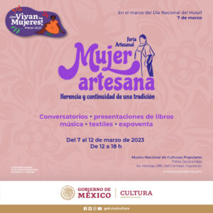 Así, del 7 al 12 de marzo, el Museo Nacional de Culturas Populares recibe “Mujer artesana: herencia y continuidad de una tradición”, dedicada a divulgar los saberes heredados por generaciones de mujeres que, al confeccionar huipiles, dan cuenta de su identidad y cosmogonía, donde además de conversatorios y conferencias en torno a la mujer artesana, podrán adquirir directamente de personas artesanas piezas únicas proveniente de distintos puntos del país en una expoventa.