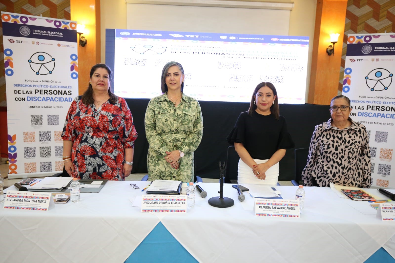 Durante los trabajos de este foro, se realizaron los paneles “Los derechos político-electorales de las personas con discapacidad en ordenamientos jurídicos nacionales, regionales e internacionales” y “El derecho de participación política de las personas con discapacidad, su tutela por la justicia electoral”, así como la presentación del libro “Acceso de las personas con discapacidad a la justicia electoral con perspectiva de género”, en donde participaron magistrados y autoridades electorales estatales, así como diversas organizaciones en defensa de igualdad de género y no discriminación, de derechos humanos, grupos vulnerables y derechos de niñas, niños y adolescentes.