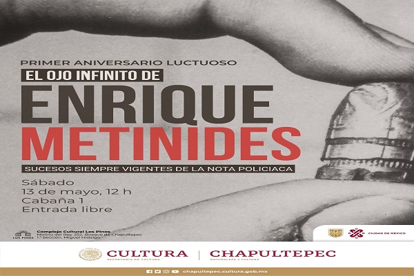 La Secretaría de Cultura federal, a través del Complejo Cultural Los Pinos, y en colaboración con la familia Metinides, abre al público la exposición “El ojo infinito. Enrique Metinides, sucesos siempre vigentes de la nota policiaca”, como un homenaje al fotoperiodista, comprometido con su entorno social y con la esfera informativa de la prensa mexicana, así como a sus aportes a los ámbitos de la fotografía y el arte contemporáneo.