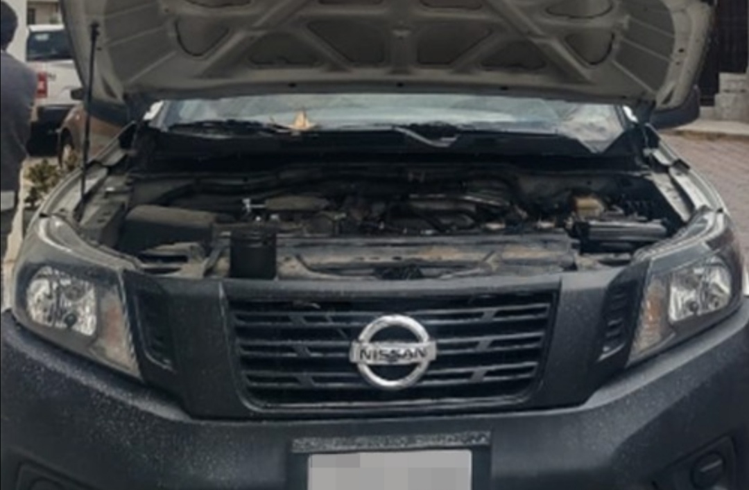 Elementos de la Policía de Investigación adscritos a la Procuraduría General de Justicia del Estado (PGJE) aseguraron una camioneta marca Nissan, tipo NP300, modelo 2020, color blanco, que contaba con números de serie distintos y vestigios de alteración, por desbastamiento.