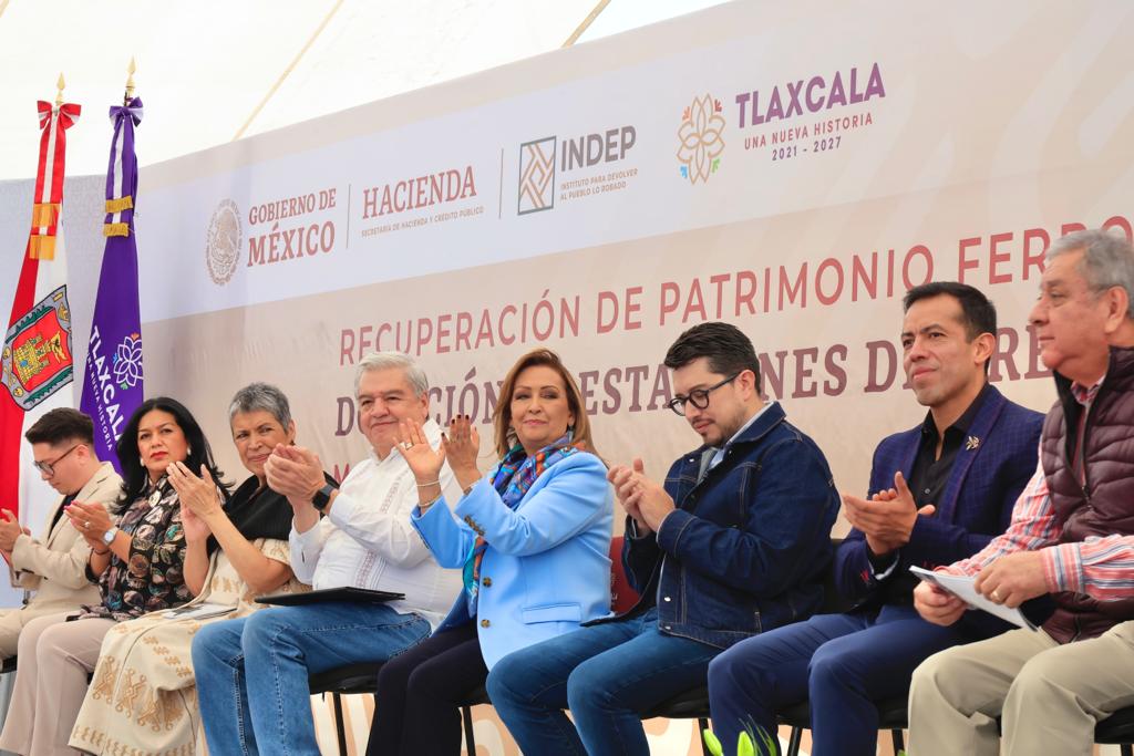 La gobernadora Lorena Cuéllar Cisneros y el director del Instituto para Devolverle al Pueblo lo Robado (Indep), Ernesto Prieto Ortega firmaron el Acta de Entrega de la Recuperación de los Ferrocarriles de Tlaxcala, con lo que se formalizó la donación de 10 ex estaciones de tren que serán convertidas en casas de cultura.