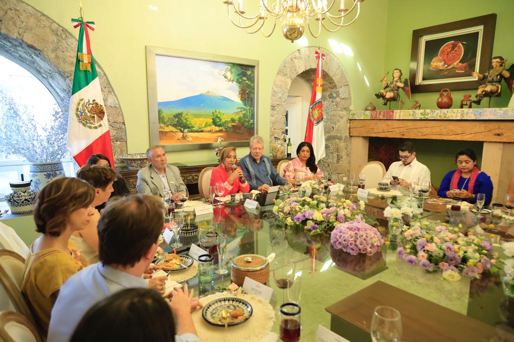 La gobernadora Lorena Cuéllar Cisneros se reunió con representantes de la Mesa de Cooperación Internacional para la Igualdad de Género en México (MCIG), para tratar temas enfocados en el trabajo de cuidados y compartir experiencias que han llevado al empoderamiento de las tlaxcaltecas.