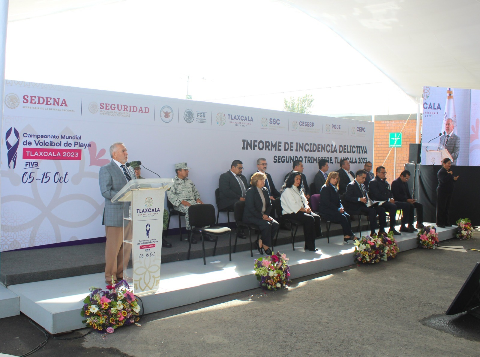 A la presentación del informe asistieron las y los integrantes de la Mesa de Seguridad, funcionarios del gabinete legal y ampliado, diputadas y diputados locales, magistradas y magistrados, las y los presidentes municipales; representantes de organismos autónomos, de partidos políticos, de transportistas, de instituciones bancarias, de cámaras y asociaciones empresariales, de la Diócesis de Tlaxcala y rectores de universidades.