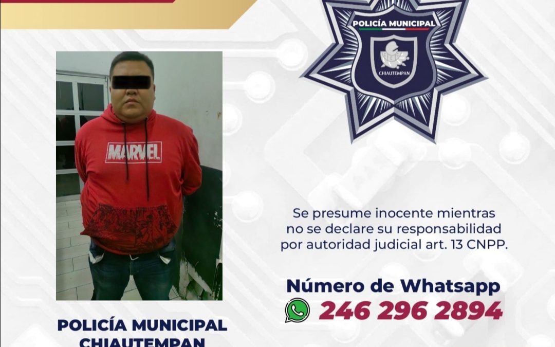 La Policía Municipal de Chiautempan detuvo la madrugada del miércoles, a un sujeto señalado por cometer asalto en una gasolinera ubicada en la colonia Industrial.