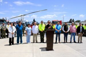 En rueda de prensa en el Hospital IMSS-Bienestar de Huamantla, los secretarios de Salud y de Seguridad Ciudadana, Rigoberto Zamudio Meneses y Alberto Martín Perea Marrufo, respectivamente, informaron que en este operativo de salud y seguridad participaron instituciones de auxilio, protección civil, la Secretaría de la Defensa Nacional (Sedena), la Marina, Secretaría de Seguridad Ciudadana (SSC), y elementos municipales.