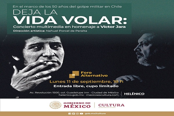 Imbuido por los valores de lucha por la justicia y la libertad, el músico Nahuel Porcel de Peralta creó Deja la vida volar: un concierto multimedia en homenaje a Víctor Jara, que se presentará el lunes 11 de septiembre de 2023 a las 18:00 horas en el Foro Alternativo con entrada libre.