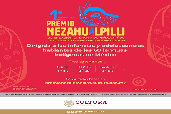 La Secretaría de Cultura del Gobierno de México, a través de la Dirección General de Culturas Populares, Indígenas y Urbanas (DGCPIU), da a conocer las obras ganadoras de la primera Convocatoria del Premio Nezahualpilli de creación literaria de niñas, niños y adolescentes en lenguas mexicanas 2023.