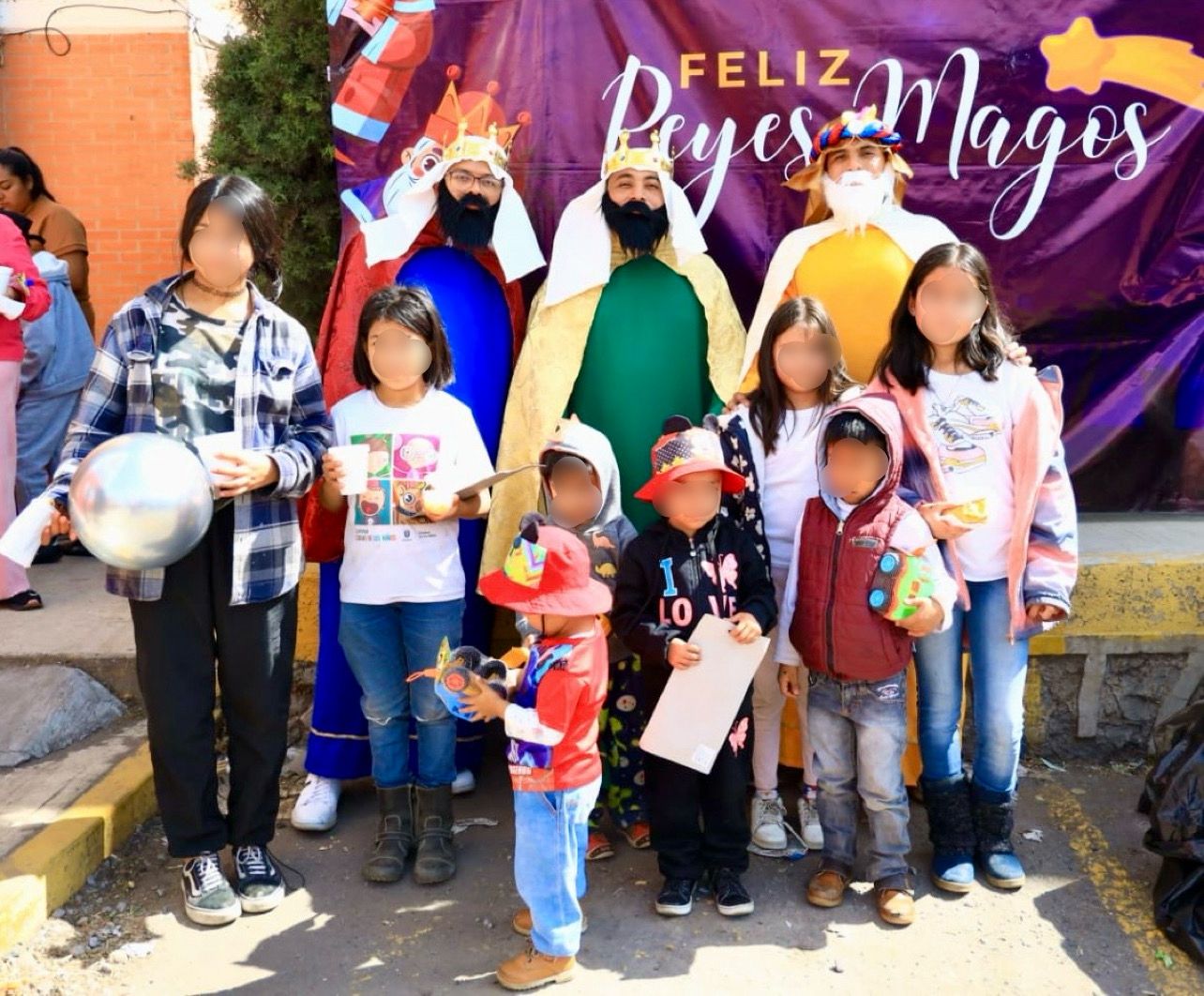 Durante la entrega de juguetes, también compartieron la tradicional rosca de reyes y atole, así como disfrutar de la compañía, baile y fotos del recuerdo con los Reyes Magos.
