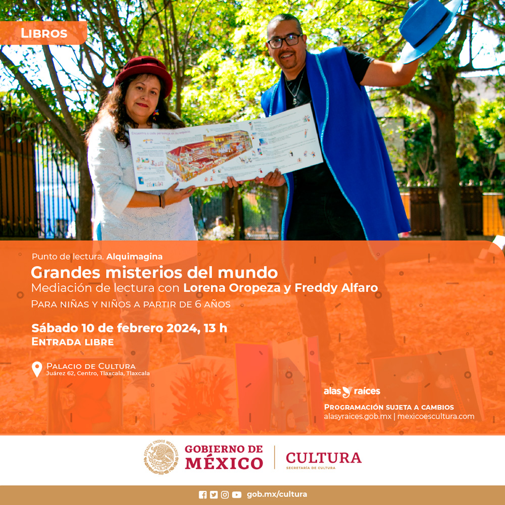 En 2024, las actividades de Alquimagina del Palacio de Cultura de Tlaxcala, sede de la Secretaría de Cultura federal, regresan a partir de febrero, en colaboración con los mediadores Lorena Oropeza y Freddy Alfaro para acompañar a quienes deseen ser parte de esta comunidad alrededor de los libros y sus historias, en combinación con diversas disciplinas artísticas.