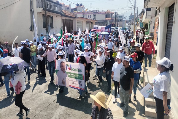 Itatí Cuahutle/ElCensor.- Nicolás Gutiérrez, candidato a la presidencia municipal de Chiautempan de la alianza PRI-PAN, recorrió la comunidad que lo vio nacer, crecer y trabajar tal y como su familia lo ha venido haciendo desde hace muchos años, con bombo y platillos fue bien recibido por las familias de su natal Cuahuixmatlac, en una caminata, todos le demostraron su respaldo al proyecto que encabeza el Chiautempense.