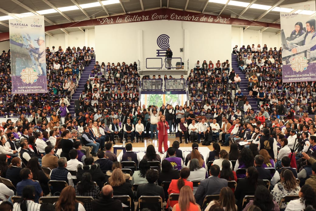 La gobernadora del estado, Lorena Cuéllar Cisneros, hizo realidad la entrega de equipo de cómputo y mobiliario para beneficiar a 14 mil 749 alumnos y docentes de los 24 planteles de Colegio de Bachilleres del Estado de Tlaxcala (Cobat), con el objetivo de brindarles las herramientas necesarias para mejorar su calidad educativa después de 13 años sin actualizarse.