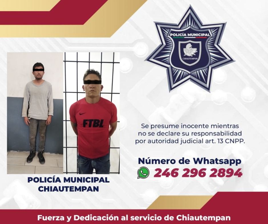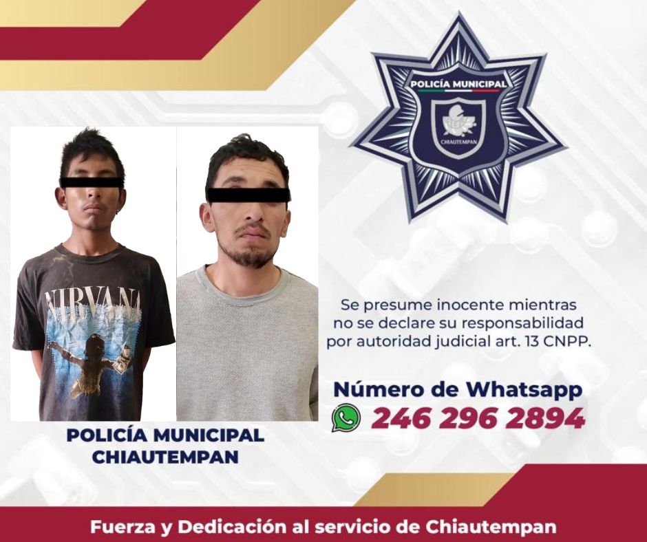 Éstos sujetos fueron puestos a disposición del Juez Municipal por la falta administrativa, cabe mencionar, que la Policía de Chiautempan hace un enérgico llamado a la población a denunciar en caso de identidicar a algunos de los masculinos, pues podrían estar relacionados a otros delitos ocurridos en la zona.