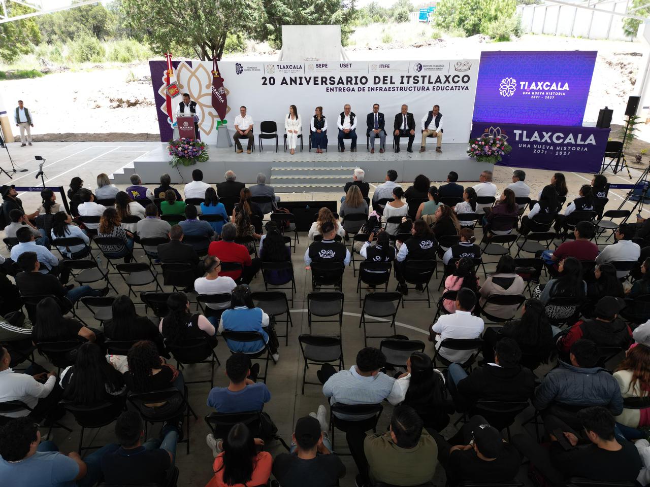 Al acudir a la ceremonia por el vigésimo aniversario del Instituto Tecnológico Superior de Tlaxco (ITST) y la entrega de infraestructura educativa, la gobernadora Lorena Cuéllar Cisneros aseguró que los alumnos de Tlaxcala la motivan a dar lo mejor en materia educativa, por lo que, en tres años, su administración duplicó la infraestructura educativa de Tlaxcala.