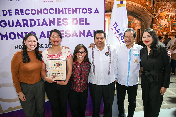 En un acto celebrado en Palacio de Gobierno, la gobernadora Lorena Cuéllar Cisneros realizó la entrega de reconocimientos a los Guardianes del Patrimonio Artesanal, en compañía de Saúl Pérez Bravo, director de Casa de las Artesanías de Tlaxcala (CAT), en la que fue galardonada Ana Laura Hernández Varela, artesana chiautempense quien recientemente fue ganadora del Gran Premio Nacional de Arte Popular Mexicano.