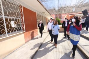 Previo al acto de entrega de equipos de cómputo, la gobernadora recorrió las instalaciones de El Coltlax y develó una placa del aula rotulada con el nombre “Dr. Gonzalo Yanes Díaz”, quien fue cofundador de la institución y destacado académico e investigador.