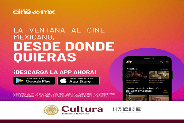 La Secretaría de Cultura del Gobierno de México, a través del Instituto Mexicano de Cinematografía (IMCINE), anuncia el lanzamiento de las aplicaciones de la plataforma de streaming Nuestro Cine Mx para dispositivos móviles con sistema operativo iOS y Android y para televisiones inteligentes o equipos con Android TV.