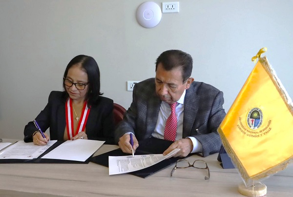 En su reciente visita a ese país andino, el Doctor Serafín Ortiz Ortiz, y la Doctora Lida Ascencio Trujillo, Rectora de la UNE, formalizaron esta alianza internacional que es relevante para el intercambio de estudiantes, docentes y personal administrativo.