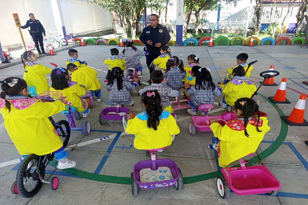 Entre las actividades destacan las enseñanzas sobre vialidad y respeto a los señalamientos, el correcto tránsito como peatones y conductores, así como dinámicas educativas sobre el uso del semáforo y la importancia de replicar estos conocimientos en el entorno familiar.