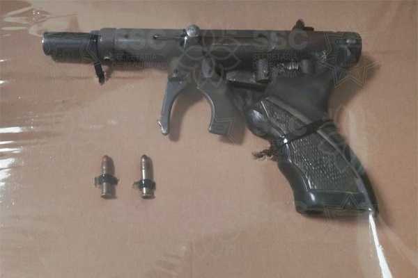 Durante la inspección preventiva, realizada conforme a los protocolos establecidos, los policías localizaron entre sus pertenencias un arma de fuego corta con dos cartuchos útiles, así como una cartera.