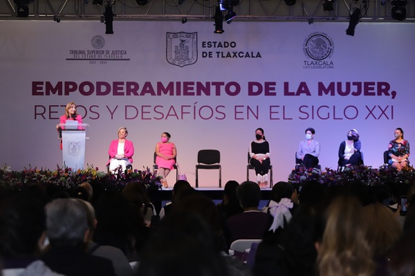 Durante el Conversatorio, la magistrada presidenta del Tribunal Superior de Justicia del Estado (TSJE) señaló que la mujer ha tenido especial importancia en el acceso a la justicia, sin embargo, es fundamental abatir la disparidad entre los géneros, la violencia laboral, estereotipos y otros aspectos que fomentan la discriminación.